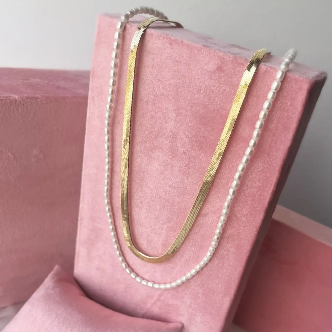 Magic kæde i forgyldt messing (40+5cm) & perle kæde (42+5cm)