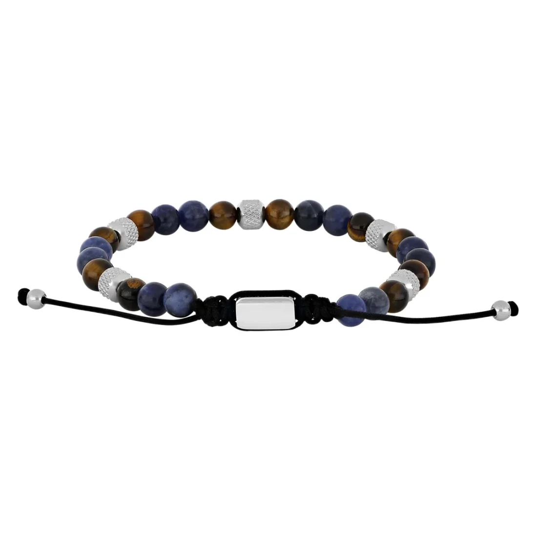 Sten armbånd med 8 mm gul tiger øje, sodalit og stål